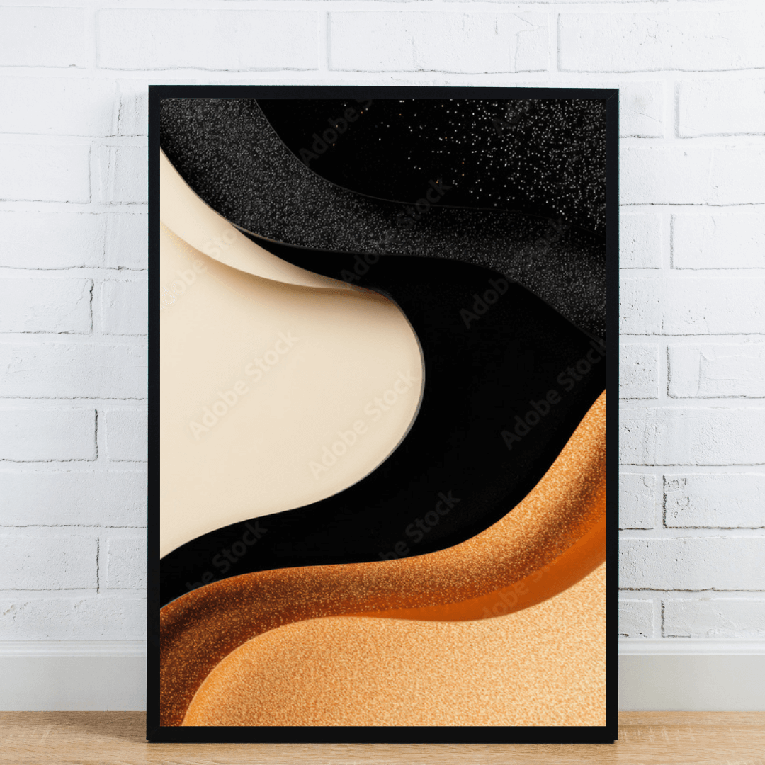 A stunning abstract wall art featuring smooth curves in black, beige, and gold tones. Perfect for adding a touch of sophistication to any modern living space.