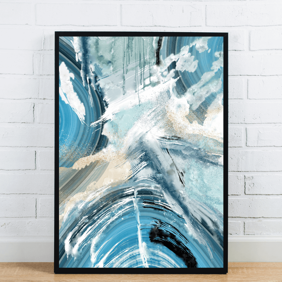 Modern, fluid, and full of movement – this abstract blue art adds energy and depth to your space with its dynamic strokes and textures.