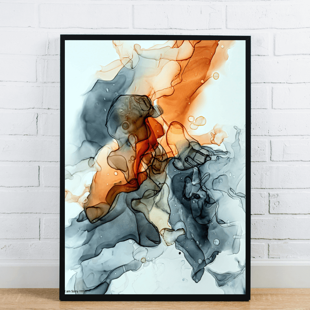 This eye-catching fluid ink artwork combines smoky greys and burnt orange tones in a mesmerizing dance of color and transparency. The organic flow and layered appearance bring movement and energy to any setting. Ideal for contemporary, minimalist, or industrial-style rooms, this piece offers a sophisticated splash of color and form without overwhelming the space.