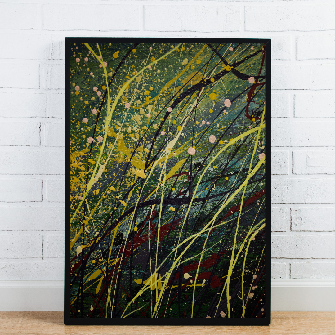 This Vibrant Abstract Splatter Painting is an energetic celebration of color, chaos, and creativity. Splashes of yellow, green, deep red, and soft pink collide in a chaotic yet harmonious dance across a dark-toned background. Perfect for those who love expressive, modern art, this piece brings high energy to any space. Whether you’re designing a creative office, studio, or vibrant living room, this artwork sets the tone for bold inspiration and unapologetic self-expression.